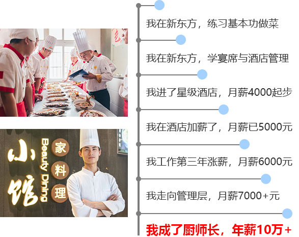 就业方向:餐饮总监、餐饮部经理、行政总厨、厨师长、膳食营养师、烹饪美食家